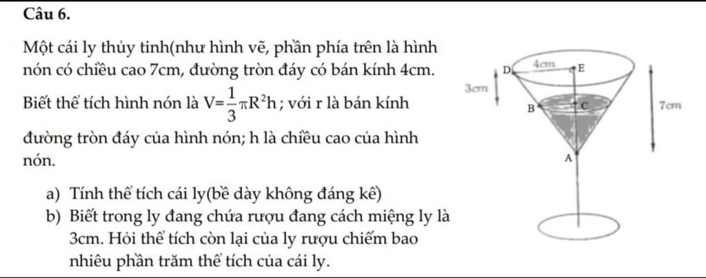 a.Thể tích ly là: