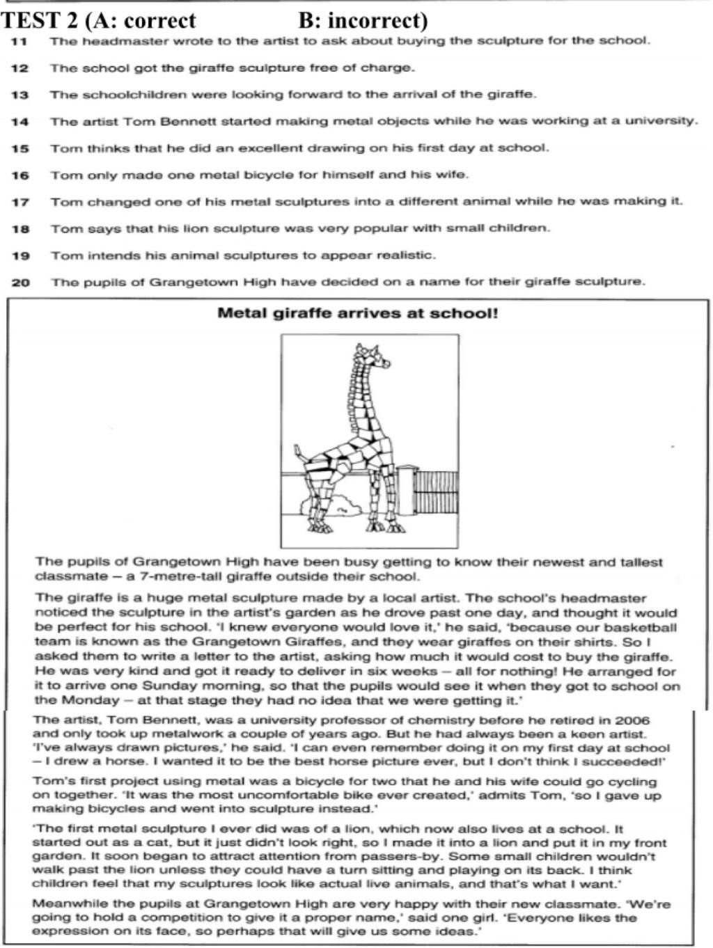 ⇒ Không đề cập đến chuyện bán cho trường tác phẩm điêu khắc hươu cao cổ miễn phí