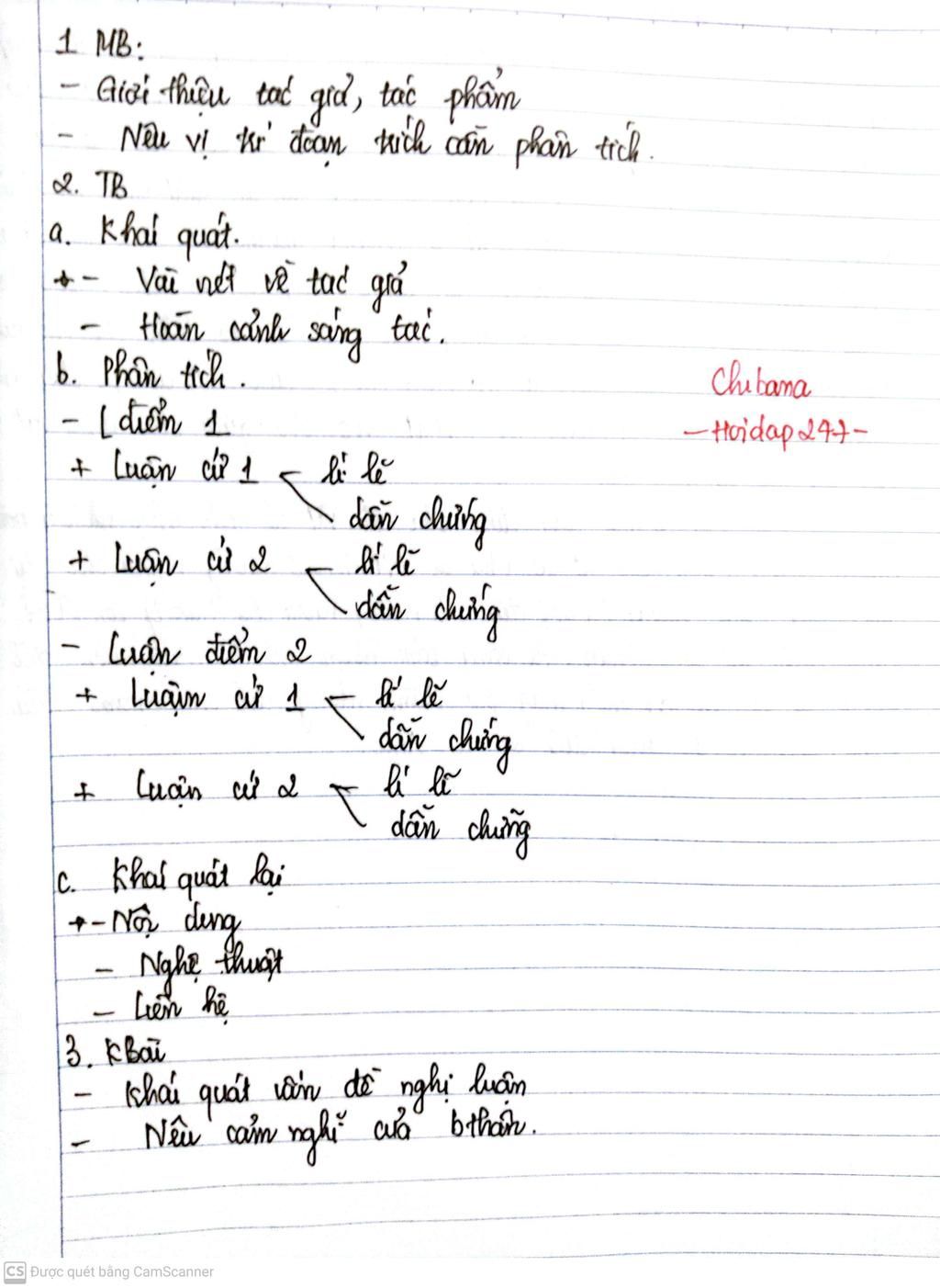 Viết dàn ý của bài văn nghị luận phân tích 1 đoạn trích trong tác phẩm