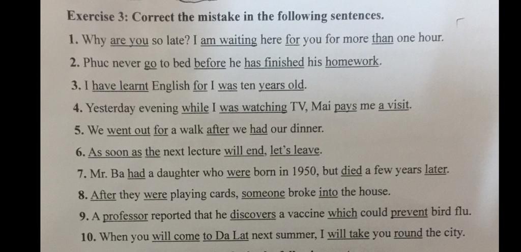 3. "I was ten years old" là một mệnh đề => when, "have learnt" đổi thành learnt