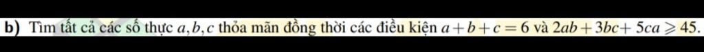 Mà `2ab+3bc+5ca>=45` nên `2ab+3bc+5ca=45`