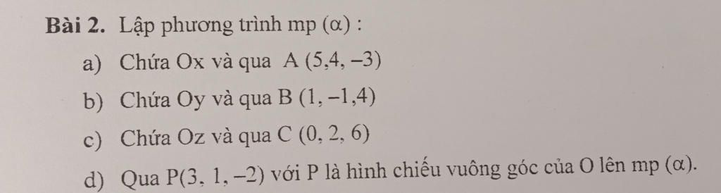 Vecto pháp tuyến của mp($\alpha$) đi qua B(1;-1;-4) và chưa trục Oy có 1 vecto pháp tuyến là