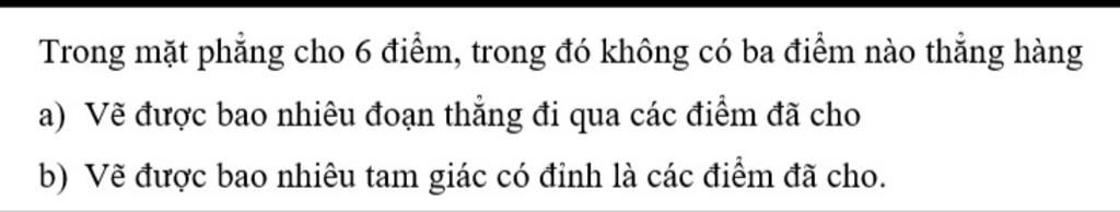b,số tam giác được tạo thành 6 điểm trong một mặt phẳng là 20