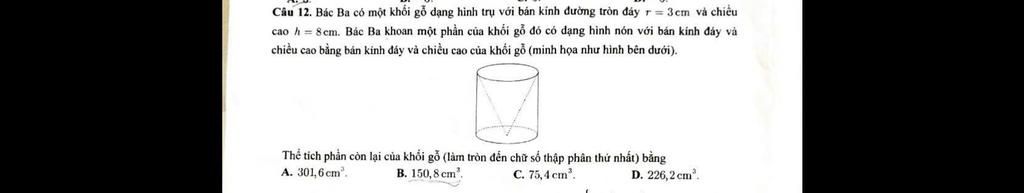 `72\pi-24\pi=48\pi≈150,8` (cm³)