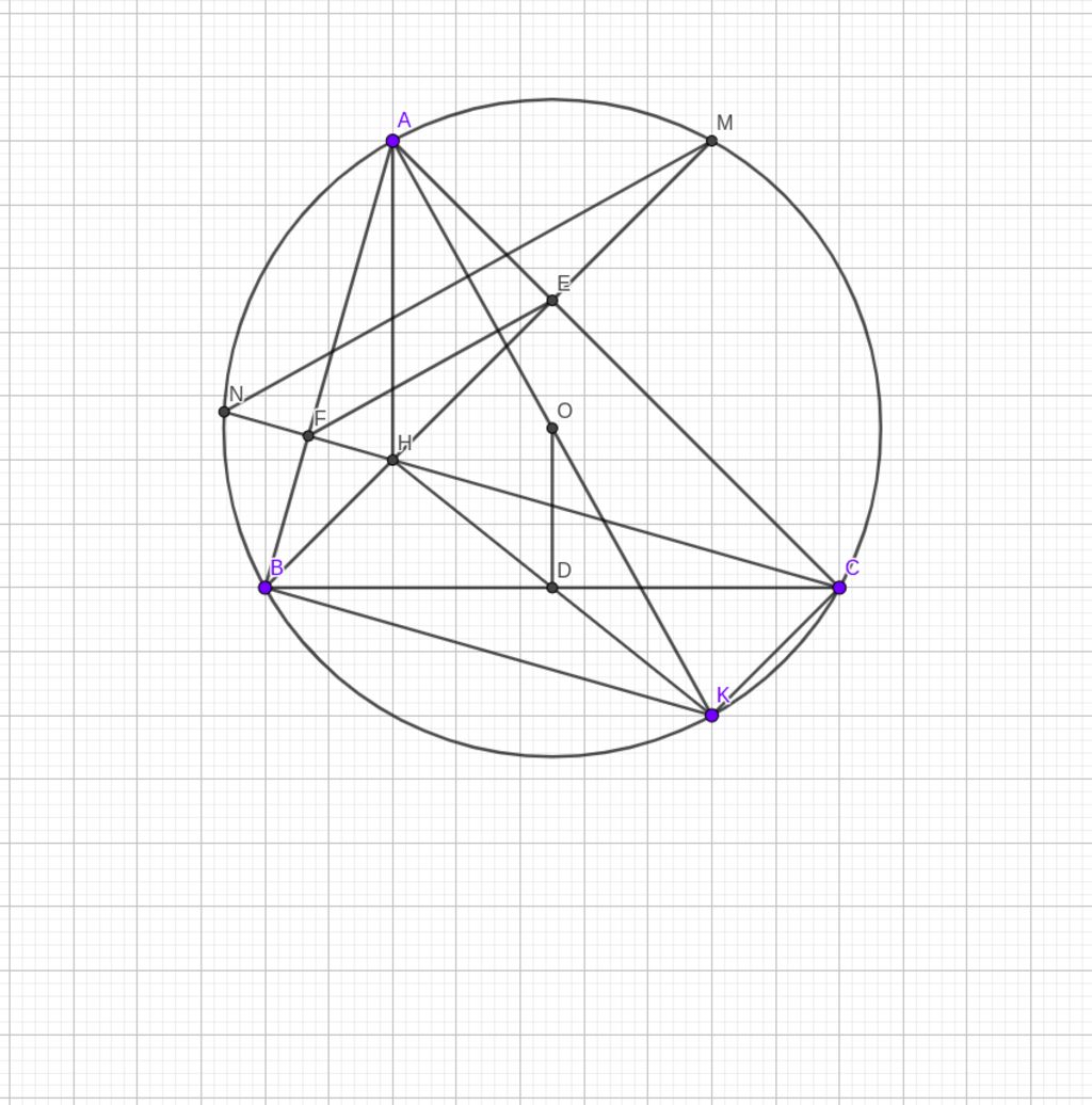 a.Ta có: $\widehat{BEC}=\widehat{BFC}=90^o\to BCEF$ nội tiếp đường tròn đường kính $BC$