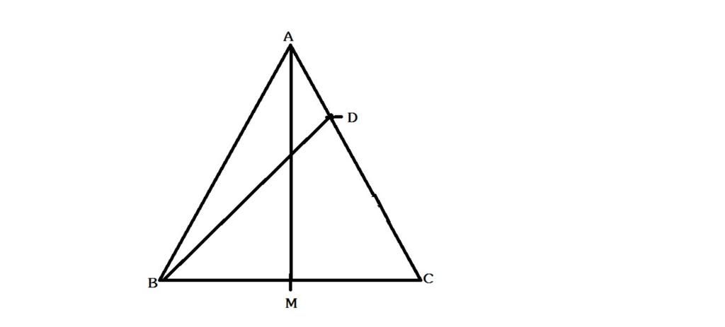 Để tìm tỉ số AO/OM, ta cần xác định các độ dài AM và MO. Gọi x = AM, khi đó x = MC do M là trung điểm của BC. Ta có AM = MC = x. Do AM cắt BD tại O, ta sử dụng định lí Menelaus trong tam giác BCD để tính tỉ số AO/OM: \[ \frac{BO}{OD} . \frac{DM}{MC} . \frac{CA}{AB} = 1 \] Vì M là trung điểm của BC nên MC = MB = x. \[ \frac{BO}{OD} . \frac{DM}{x} . \frac{2x}{AB} = 1 \] VD: tính AC thì: DM = 2DC خ Ta biết AD = 1/3 AC, nên DC = 2/3 AC và AM = MC. Bởi vì ABC đẳng lăng nhứg ta có AB=AC => DC= 2/3 AB=2/3 AC. Tương tự có BD= 7/3 AC vì Útâm Ménh giữa ABM và CDM: \( \frac{BM}{MD} \times \frac{AC}{AD} = 1 \) => MC= BM= 7/3 AC và MA= 2/3 AC( MC=BM=MA)=> AO= 1/3 AC Vậy: \[ \frac{BO}{OD} . \frac{DM}{x} . \frac{2x}{AB} = 1 \] \[ \frac{BO}{OD} . \frac{2}{3} . \frac{2}{7} = 1 \] \[ \frac{BO}{OD} = \frac{21}{8} \] Do \( AO = AM - MO = x - \frac{7}{8}x = \frac{1}{8}x \) Từ đó, ta tính được: \[ \frac{AO}{OM} = \frac{\frac{1}{8}x}{\frac{7}{8}x} = \frac{1}{7} \] Vậy, tỉ số AO/OM là 1:7.