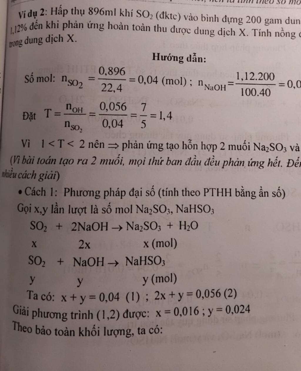 Cho em hỏi tại sao ptr 2 ko phải là Na2SO3+SO2+H2O->2NaHSO3 ạ