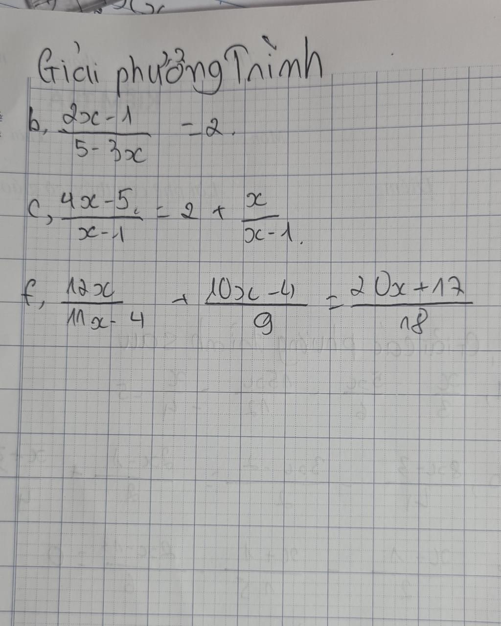 `c) (4x-5)/(x-1) = 2 + x/(x-1)`
