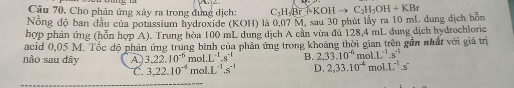 $\rm \rightarrow n_{KOH(sau)} = \dfrac{6,42 . 10^{-3} . 10}{100} = 6,42.10^{-4}(mol)$
