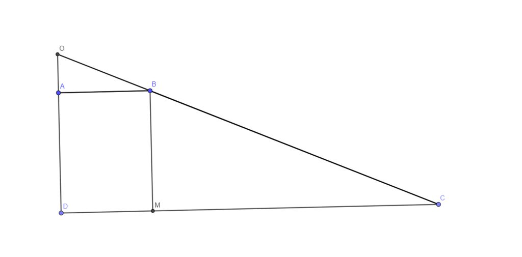 b) Kéo dài DA và CB cắt nhau tại O . Tính $S_{OAB}$