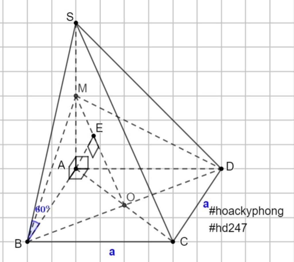 `@ABCD` là hình vuông`=>OA=(AC)/2=(a sqrt2)/2`
