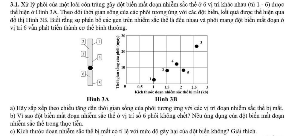 3.1. Xử lý phôi của một loài côn trùng gây đột biến mất đoạn nhiễm sắc thể ở 6 vị trí khác nhau (từ 1 - 6) được