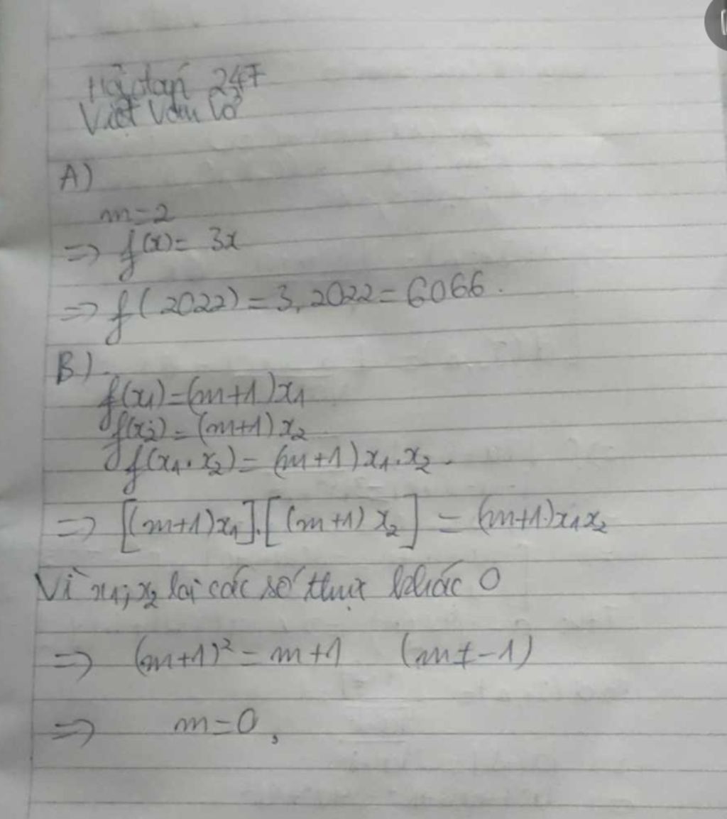 B,tìm giá trị của m để f(x1)×f(x2)=f(x1×x2) với x1,x2 là các số thực khác ở