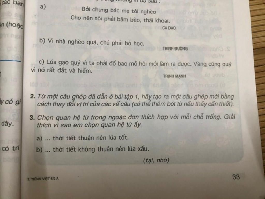 Vì câu b) nguyên nhân là thời tiết không tốt, kết quả là lúa xấu vì thế nên ta dùng quan hệ từ tại. Câu a) cũng tương tự nha bạn