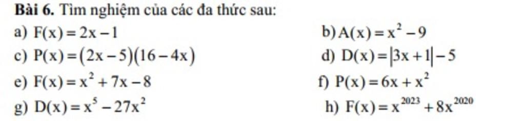 `f)` Để đa thức sau có nghiệm `=>6x+x^2=0`