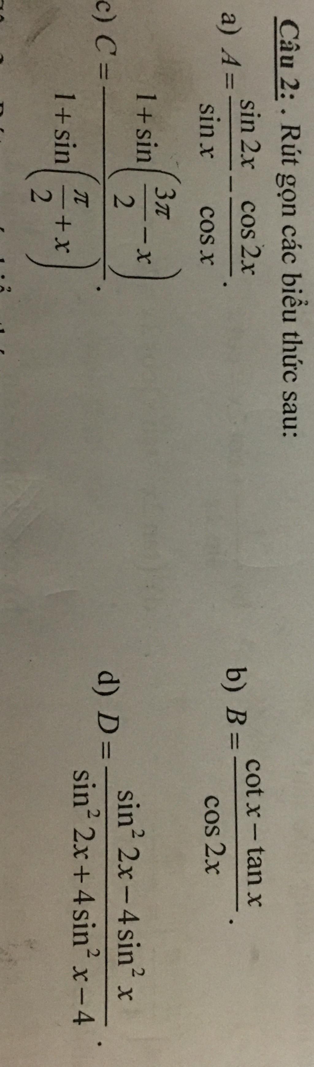 Làm giúp mình với ạ sử dụng công thức nhân đôi và hạ bậc của lượng giác ạ