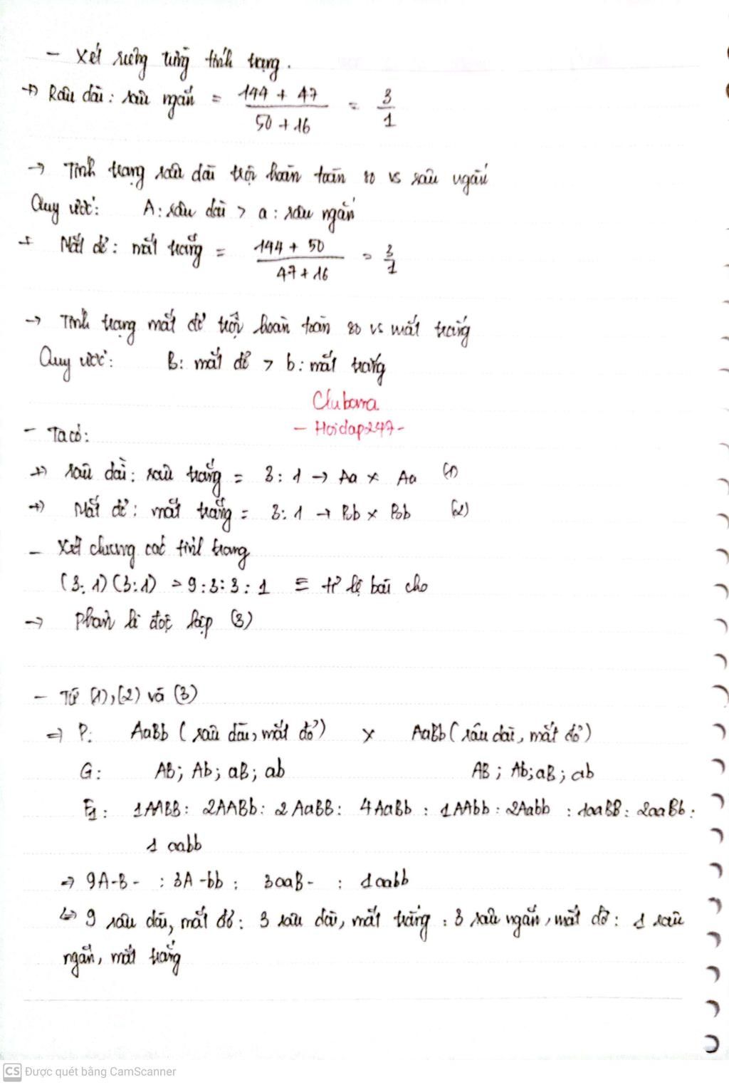⇒ Các tính trạng phân li độc lập với nhau. `(3)`