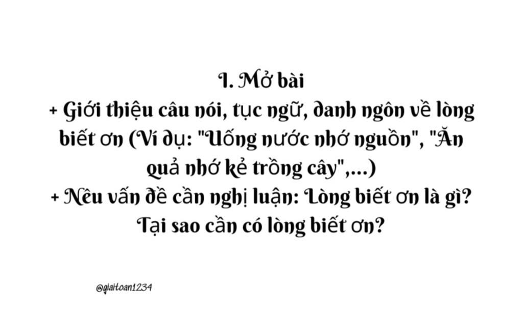 Lập dàn ý chi tiết cho đề bài: Viết bài văn nghị luận xã hội về lòng biết ơn