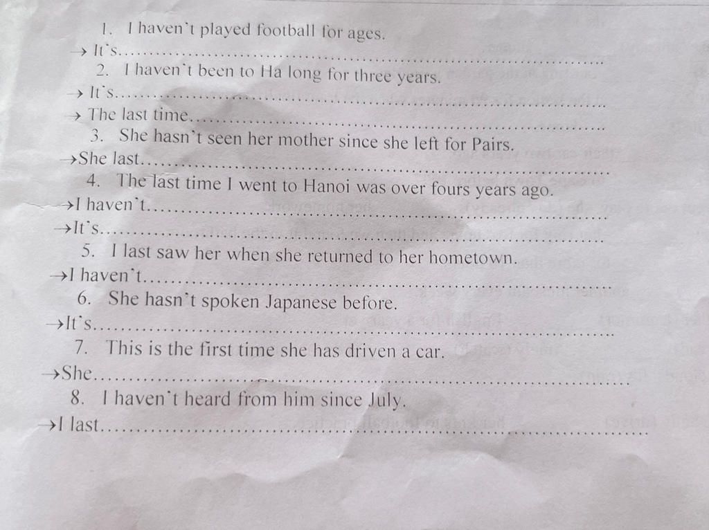 `@` sb last V when V: lần cuối làm gì khi làm gì