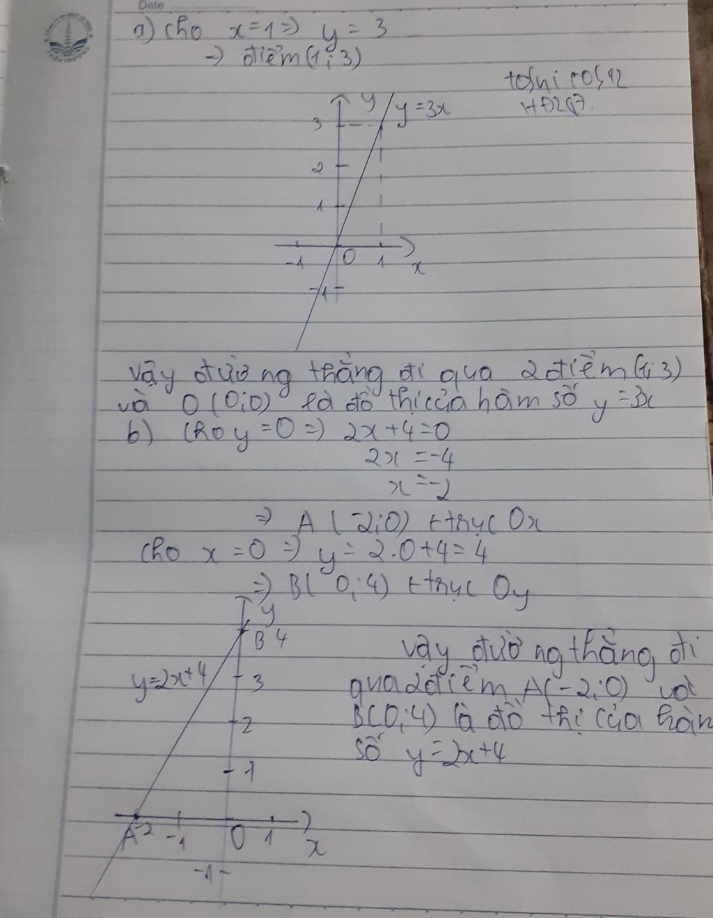 Đường thẳng `OA` là đồ thị hàm số của `y=3x`