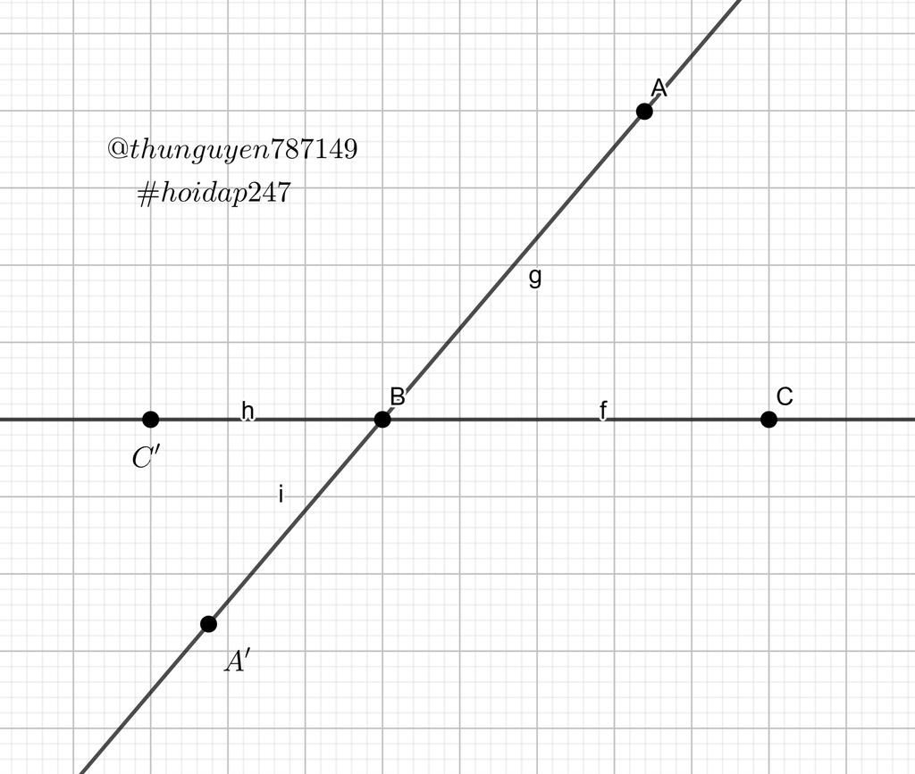 `c)` Vì hai góc `\hat{C'BA'}` và góc `\hat{ABC'}` là góc kề bù nên: