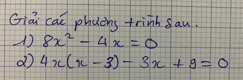 `1) 8x^2 - 4x = 0`
