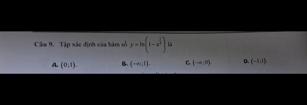 Tập xác định của hàm số y= ln(1- $x^{1/3}$ ) là