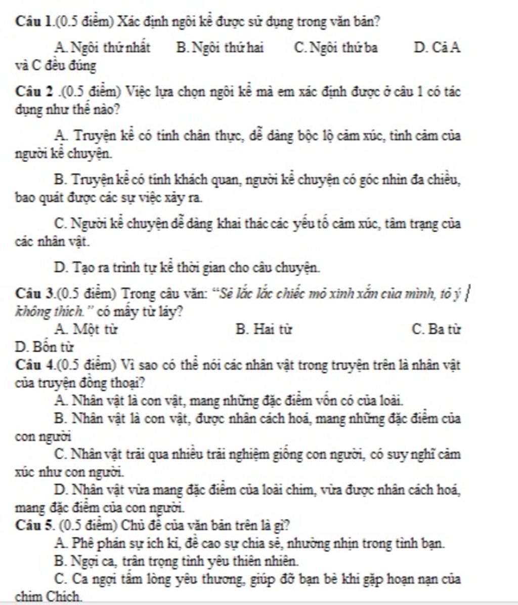 Câu 2 (0.5 điểm) Việc lựa chọn ngôi kể mà em xác định được ở câu 1 có tác dụng như thế nào?