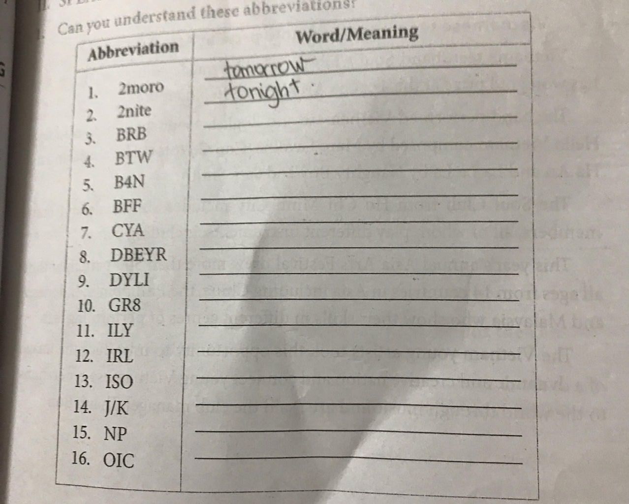 `1.` 2moro `->` Tomorrow: Ngày mai