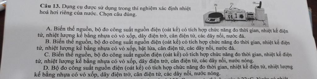 Nước nóng: Cần nước ở nhiệt độ sôi (nước nóng) để bắt đầu quá trình hóa hơi ngay lập tức khi cung cấp năng lượng. (Nếu dùng nước đá là thí nghiệm xác định nhiệt nóng chảy).