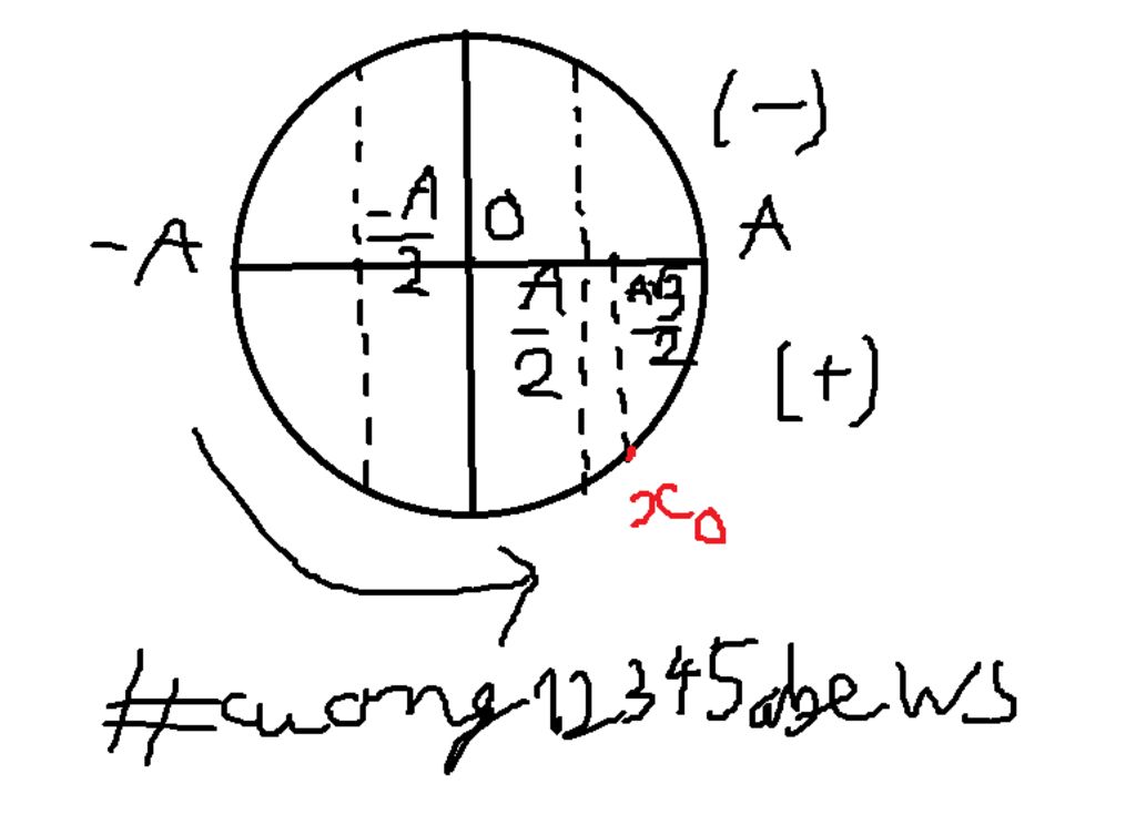 Từ `{A\sqrt3}/2` theo chiều dương `-> A`: Vật đi trong thời gian `T/12`