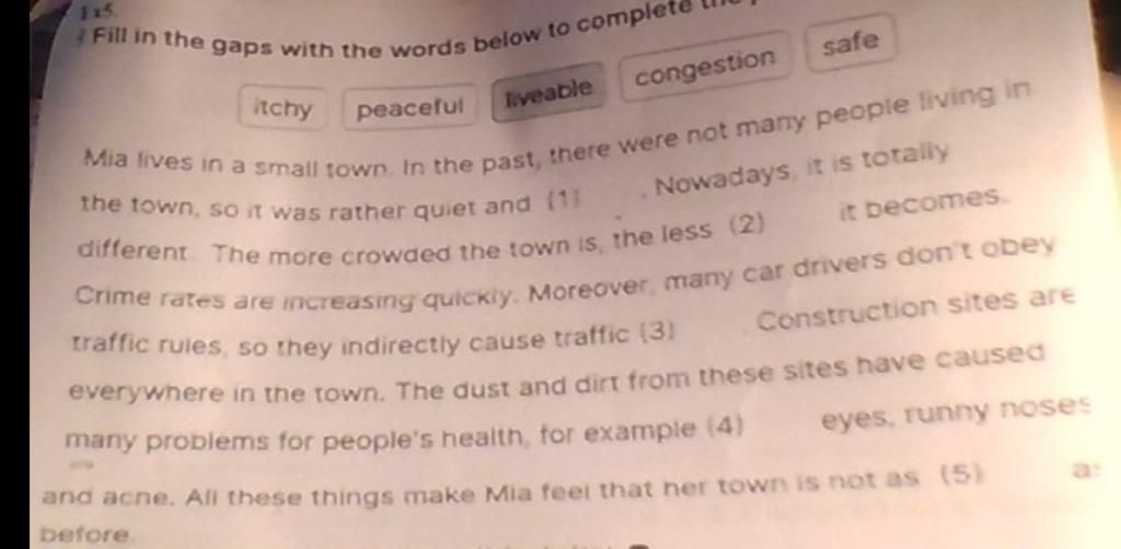 4. itchy (adj): ngứa (adj+noun, đọc ở phía trước: "many problems for people health")