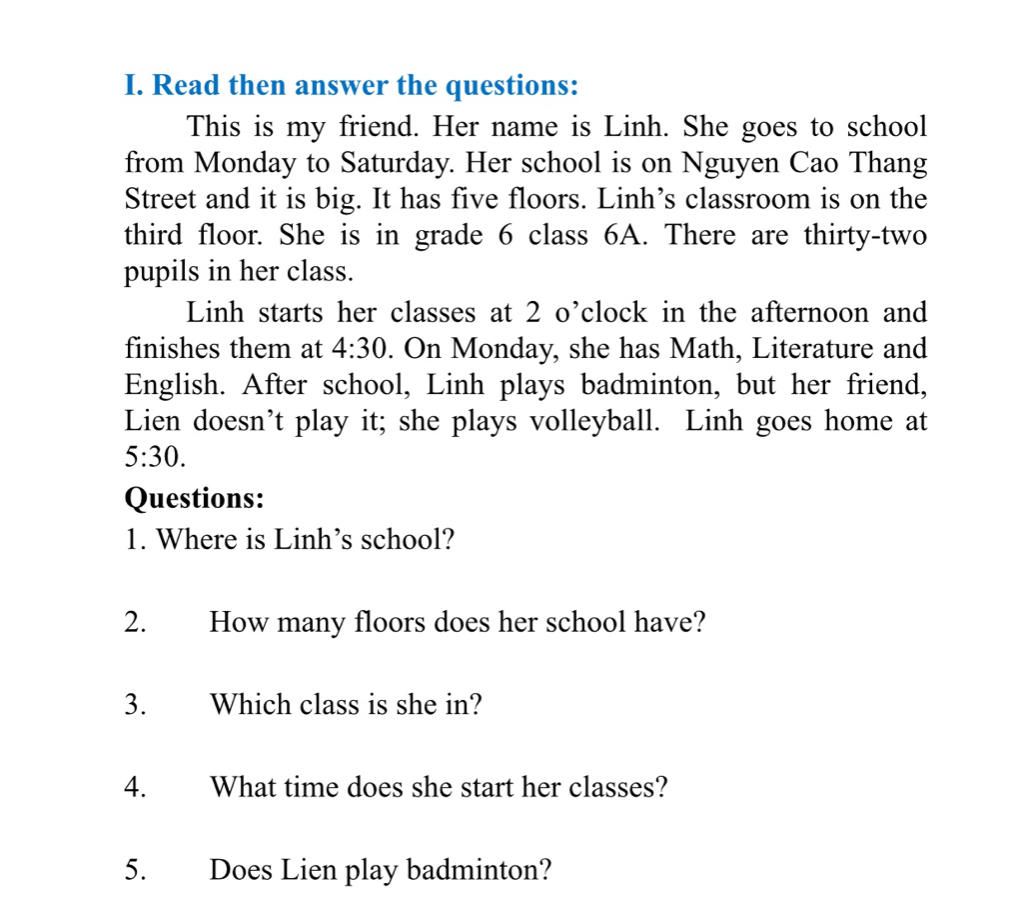 Câu 3 ạ, câu 2 her school phải là has chứ nhỉ