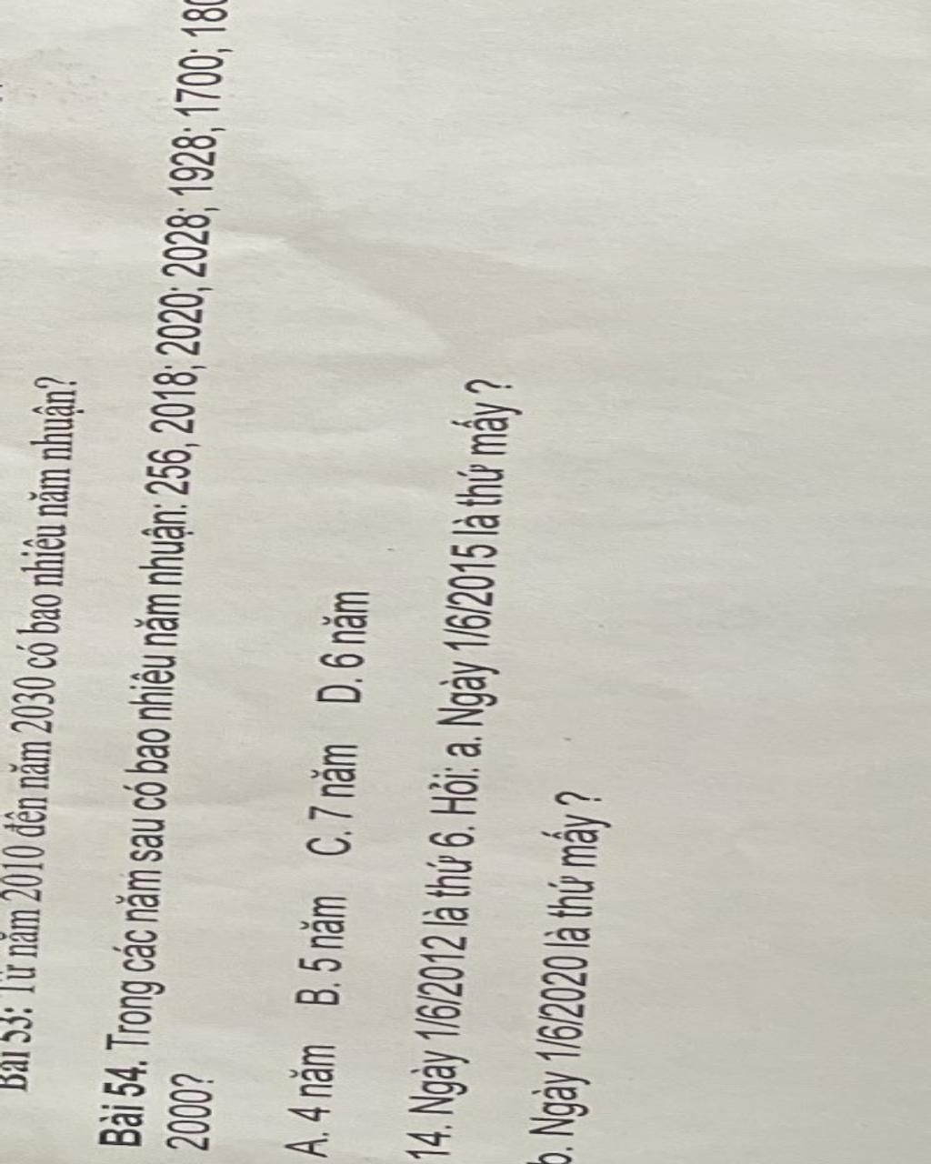=> nếu 1/6/2012 là thứ 6 => 3 năm sau 1/6/2015 là thứ 2 do + thêm 3 ngày t7 CN T2