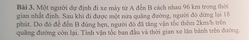 $$\dfrac{\dfrac12\cdot 96}{v}=\dfrac{48}v(giờ)$$