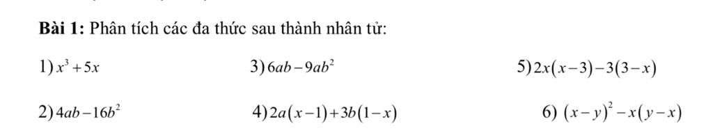 `1) x^3 + 5x = x( x^2 + 5 )`