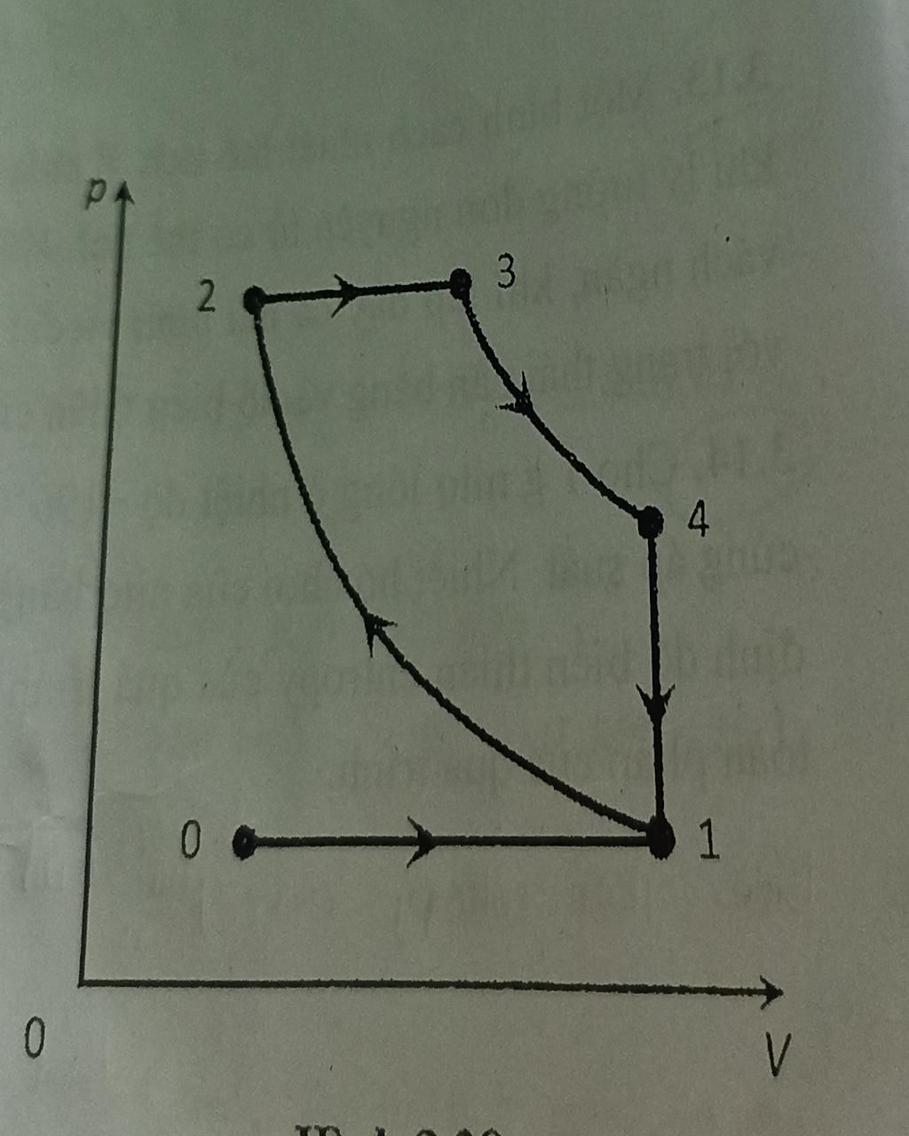 1 mol khí lý tưởng thực hiện chu trình động cơ đốt trong các nhiệt đẳng áp như hình 3.28 quá trình 1-2 và 3-4 là quá trình đoạn nhiệt, cho biết tỷ số nến E= V1/V2, hệ số giãn nở sớm p=V3/V2. Tính hiệu suất của động cơ.