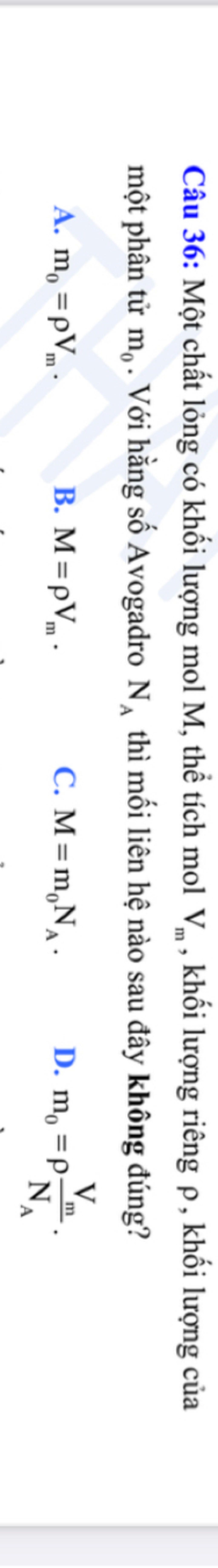 $M (g/mol), V_m (l/mol), \rho (g/l), m_0 (g), N_A = 6,022.10^{23} (mol^{-1})$