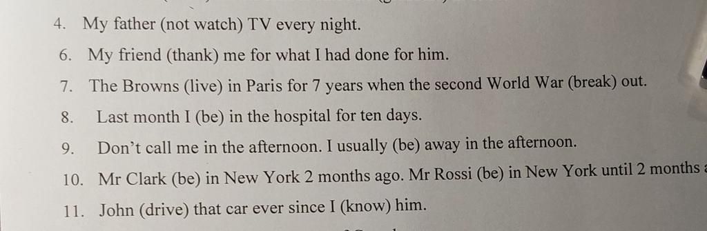 7. Had lived/broke