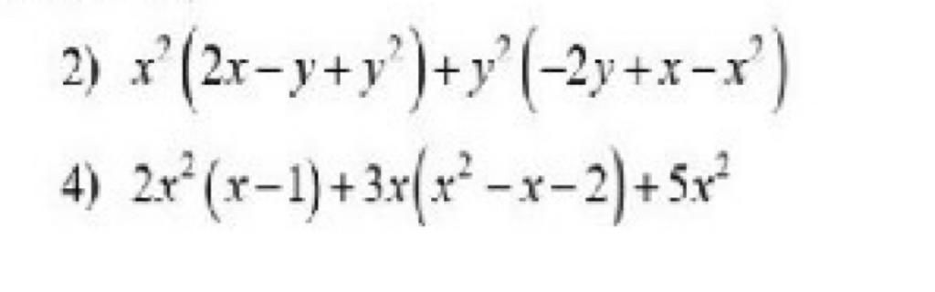 `3) 2x^2(x - 1) + 3x(x^2 - x - 2) + 5x^2`