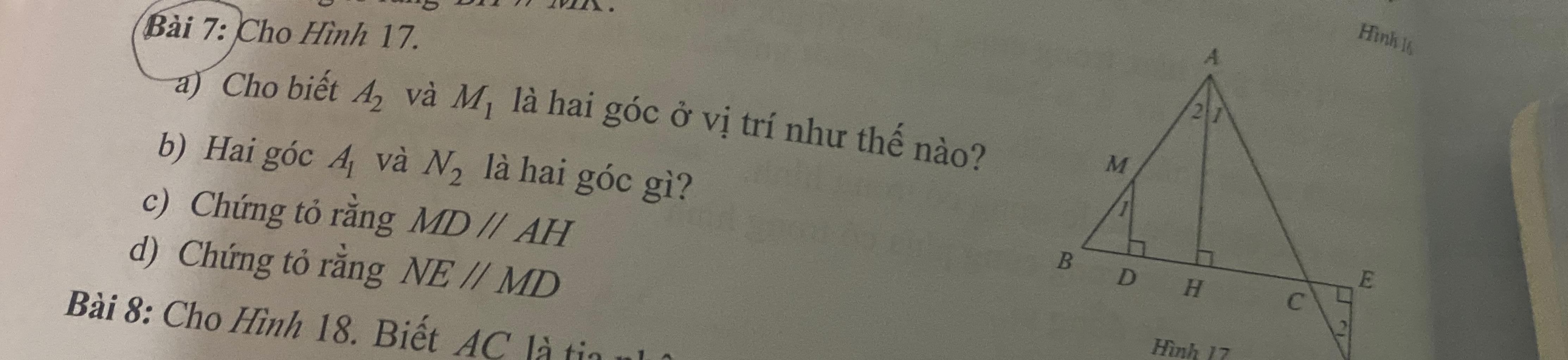 b) `A_ 1` và `N_ 2` là `2` góc ở vị trí so le trong.