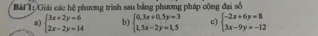 `b){(0 , 3x+0 , 5y=3),(1 , 5x-2y=1 , 5):}`