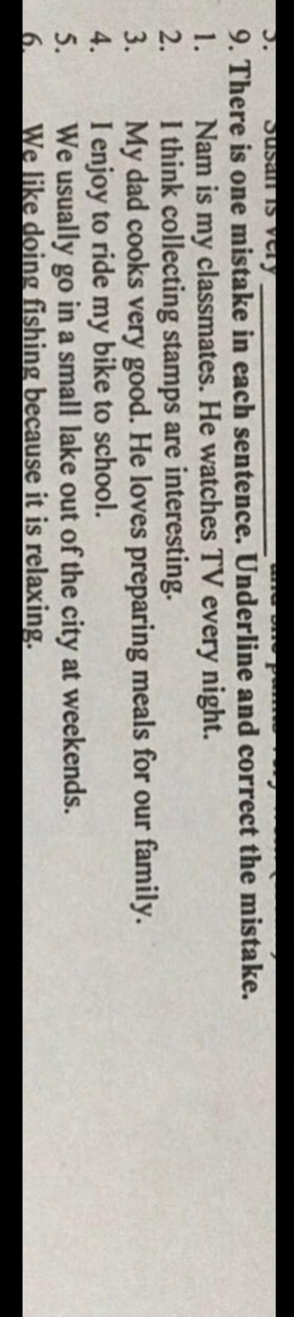 1. classmates -> classmate (Vì "Nam" là chủ ngữ số ít -> danh từ "students" theo sau cũng là số ít -> bỏ "-s")