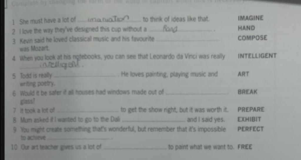 `-` imagination (n) : trí tưởng tượng
