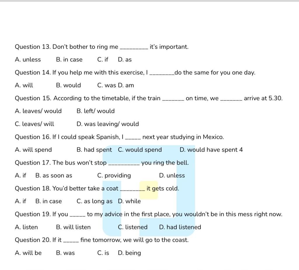 - unless: trừ khi