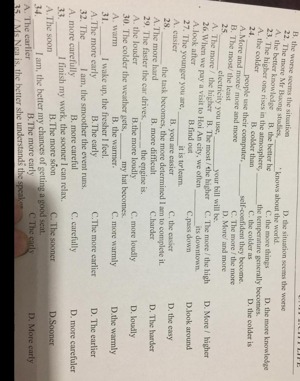 `-` The adj/adv ngắn – er + S + V…, the more + adj/adv dài + S + V…