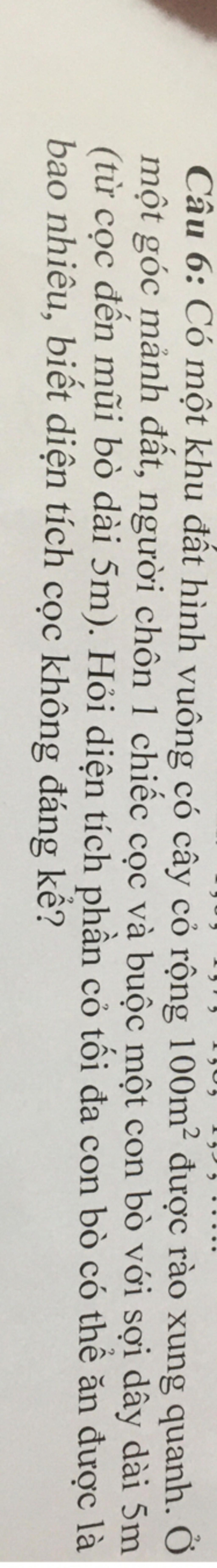 `⇒` Ta có thể thấy khi con bò ăn hết một vùng cỏ sẽ tạo ra một hình tròn với bán kính là `5 m`