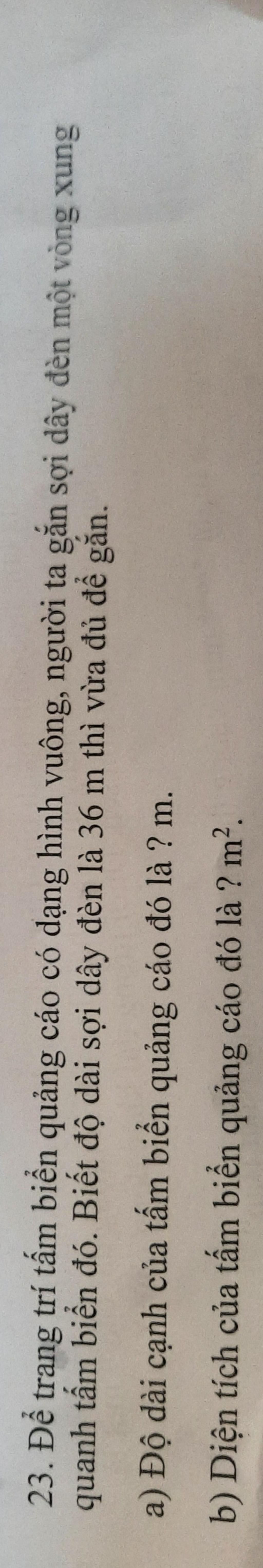 `23.` vì độ dài hình vuông có `4` cạnh `(` tức là tấm biển có hình vuông và có `4` cạnh `)`