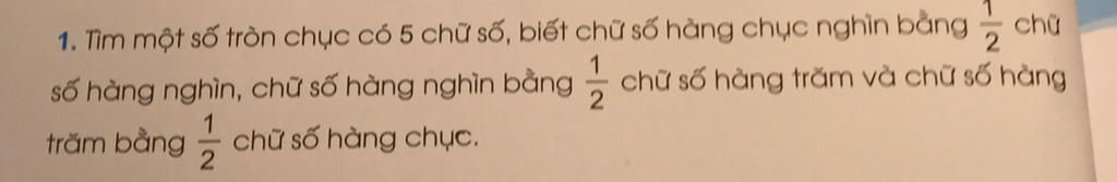 Vì chữ số hàng chục nghìn bằng `1/2` chữ số hàng nghìn, chữ số hàng nghìn bằng `1/2` chữ số hàng trăm, chữ số hàng trăm bằng `1/2` chữ số hàng chục