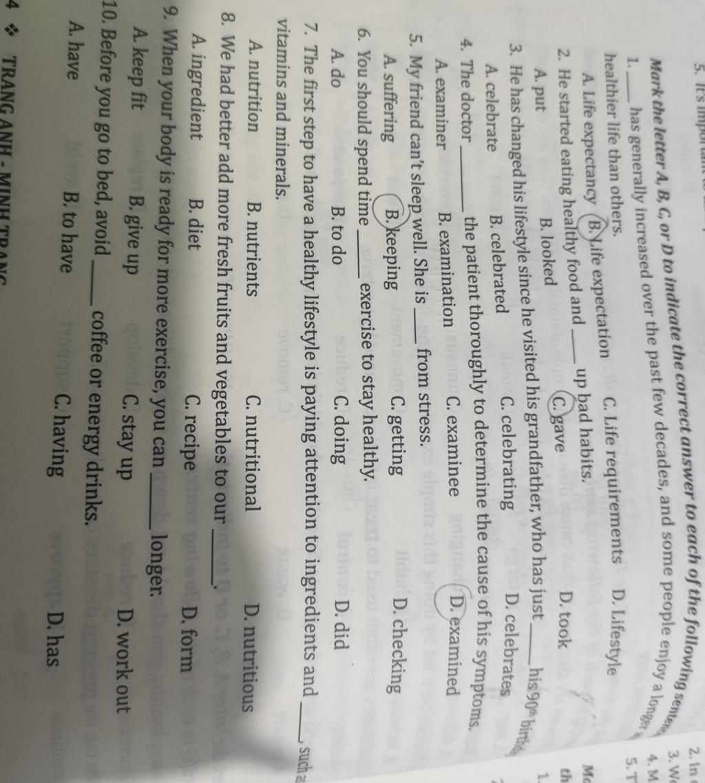 `->` Xét về từ loại thì A,B,C là danh từ, D là động từ `->` Loại A,B,C